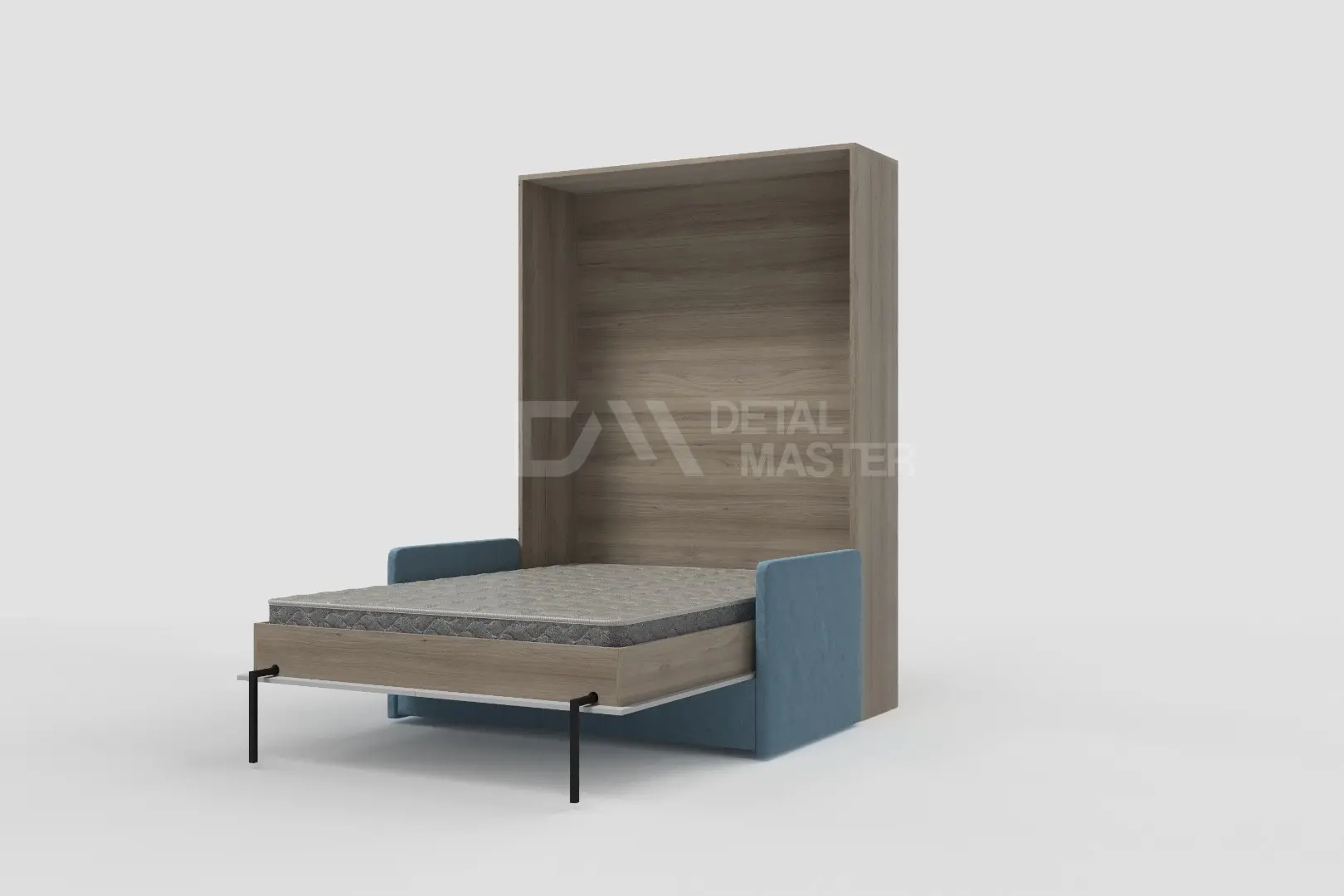 Шкаф-кровать "Simple Start Sofa" работает на механизме раскладывания собственной разработки "Start". Кровать раскладывается легким движением руки, превращаясь в полноценное спальное место. Просто потяните ее за ручки, расположенные на фасаде и выставите ножки-опоры.